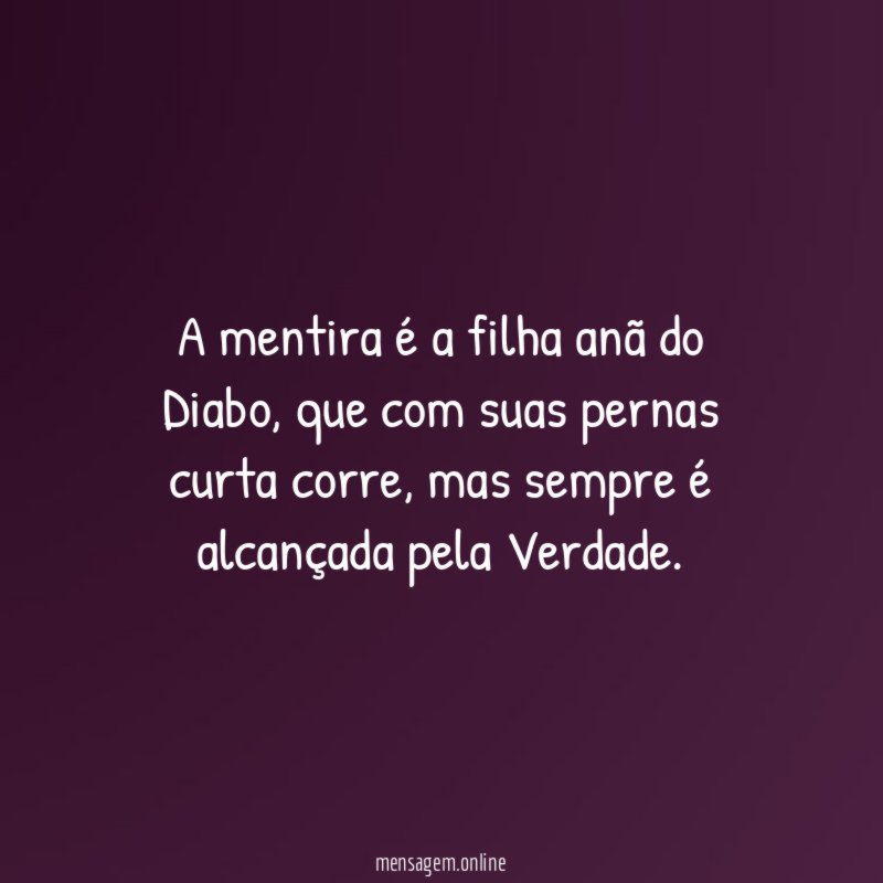 A mentira é a filha anã do Diabo, que com suas pernas curta corre, mas sempre é alcançada pela Verdade.