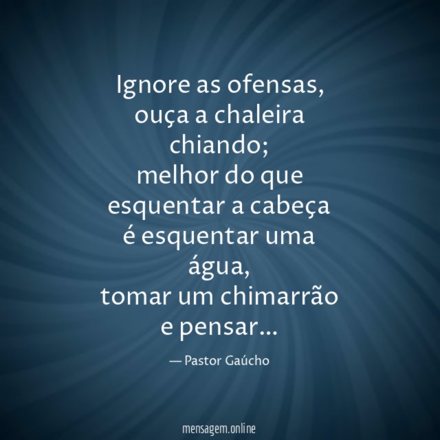 Vivente bueno tem peleias a reveria, mais feias que briga de foice no escuro, mas o Senhor te livra de todas: tchê!