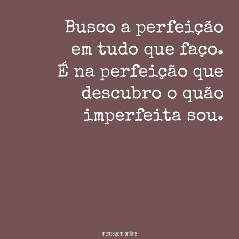 Busco a perfeição em tudo que faço. É na perfeição que descubro o quão imperfeita sou.