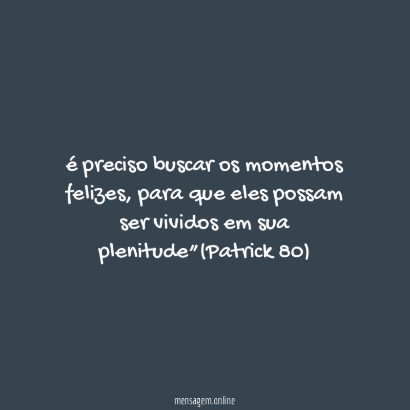 “é preciso buscar os momentos felizes, para que eles possam ser vividos em sua plenitude”(Patrick 80)