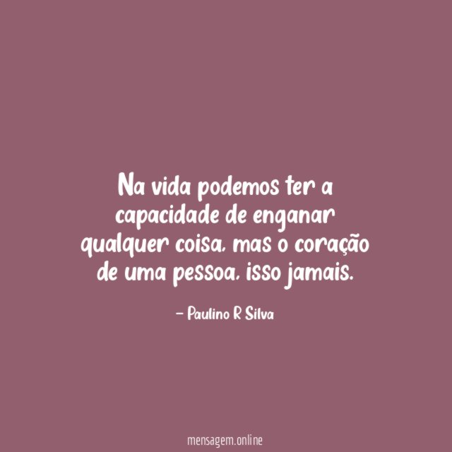 "Na vida podemos ter a capacidade de enganar qualquer coisa, mas o coração de uma pessoa, isso jamais."