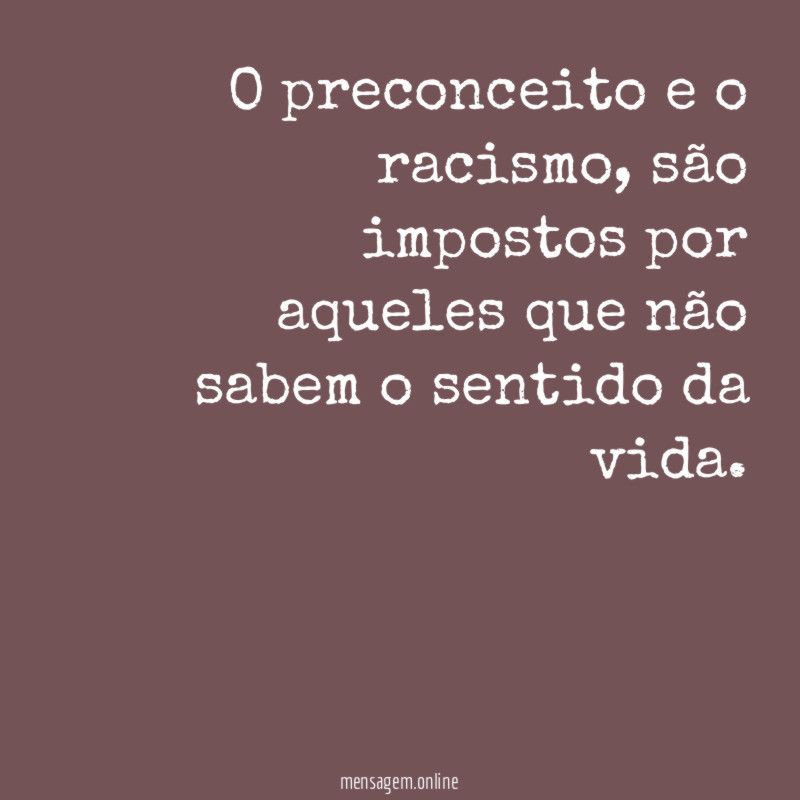 “ O preconceito e o racismo, são impostos por aqueles que não sabem o sentido da vida.”