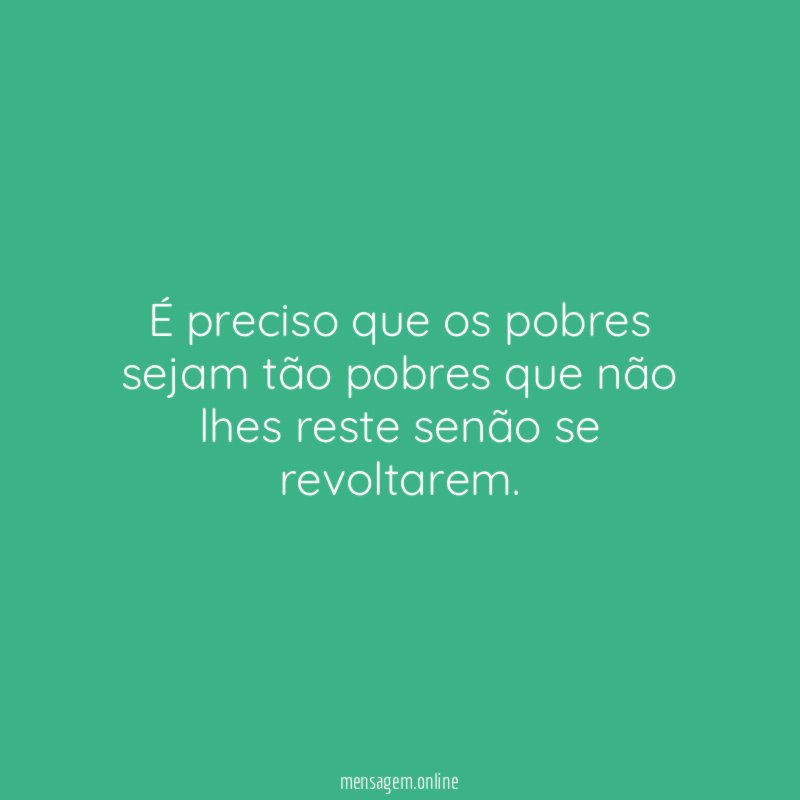 É preciso que os pobres sejam tão pobres que não lhes reste senão se revoltarem.