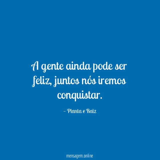 A gente ainda pode ser feliz, juntos nós iremos conquistar.