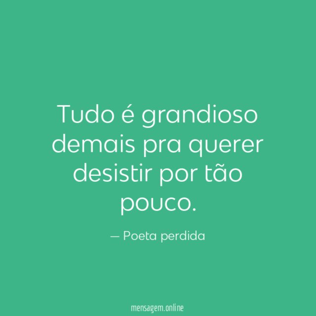 Tudo é grandioso demais pra querer desistir por tão pouco.