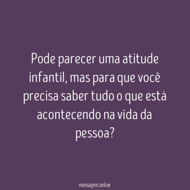 Pode parecer uma atitude infantil, mas para que você precisa saber tudo o que está acontecendo na vida da pessoa?