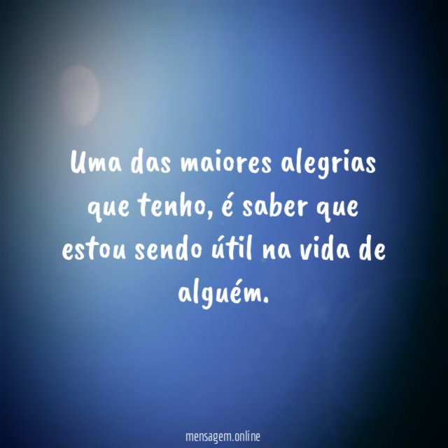 Uma das maiores alegrias que tenho, é saber que estou sendo útil na vida de alguém.