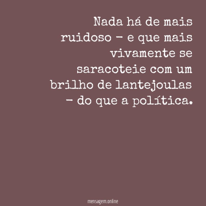 Nada há de mais ruidoso - e que mais vivamente se saracoteie com um brilho de lantejoulas - do que a política.