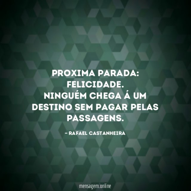 Proxima parada: Felicidade. Ninguém chega á um destino sem pagar pelas passagens.