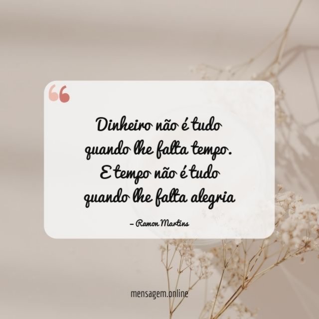 " Dinheiro não é tudo quando lhe falta tempo. E tempo não é tudo quando lhe falta alegria"