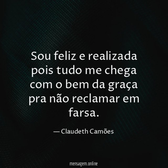Sou feliz e realizada pois tudo me chega com o bem da graça pra não reclamar em farsa.