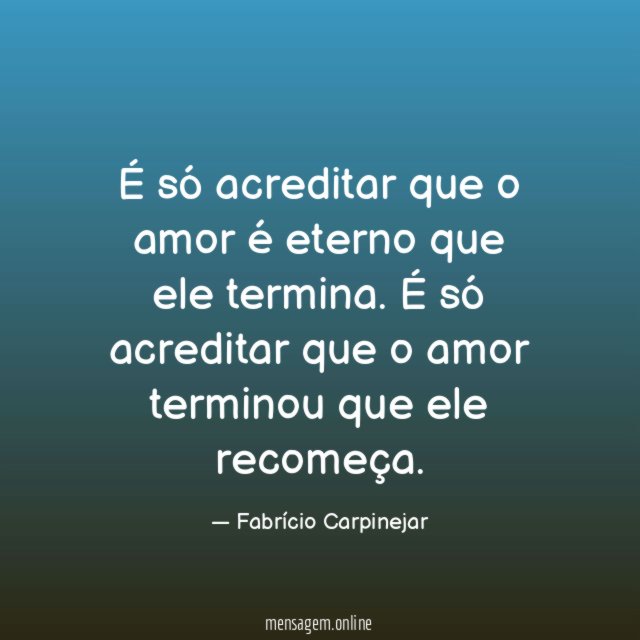 É só acreditar que o amor é eterno que ele termina. É só acreditar que o amor terminou que ele recomeça.