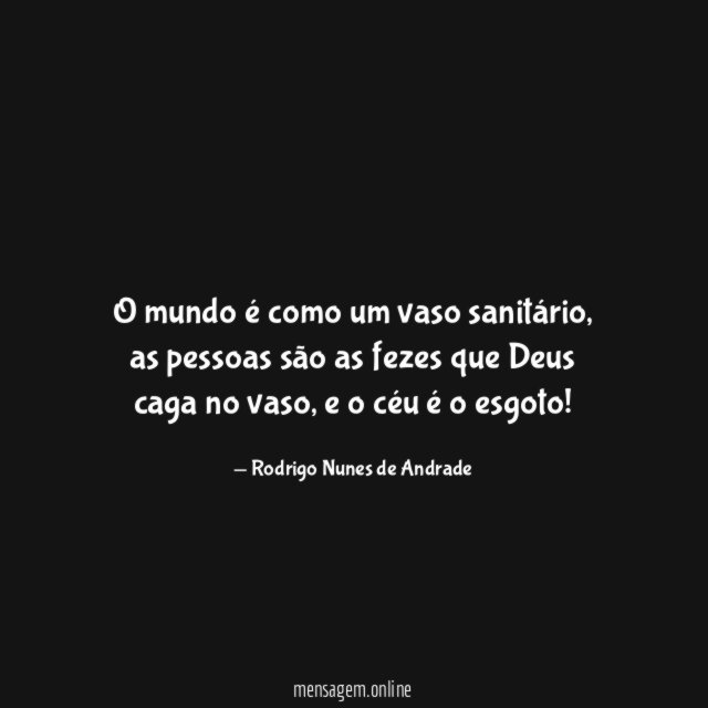 O mundo é como um vaso sanitário, as pessoas são as fezes que Deus caga no vaso, e o céu é o esgoto!