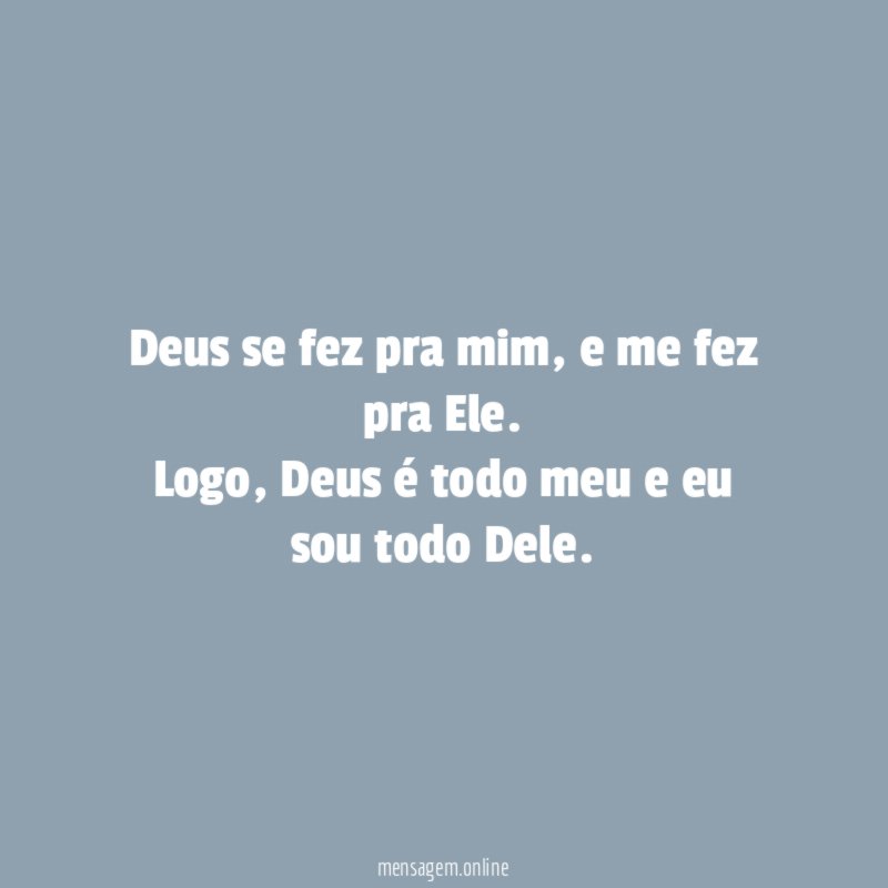 Deus se fez pra mim, e me fez pra Ele. Logo, Deus é todo meu e eu sou todo Dele.