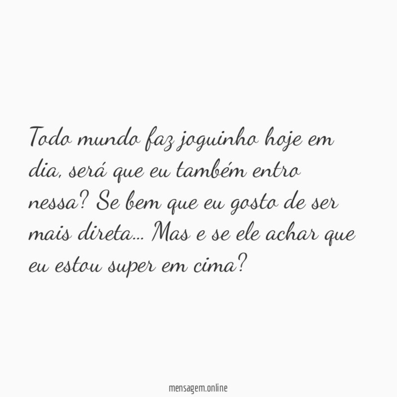 Todo mundo faz joguinho hoje em dia, será que eu também entro nessa? Se bem que eu gosto de ser mais direta… Mas e se ele achar que eu estou super em cima?