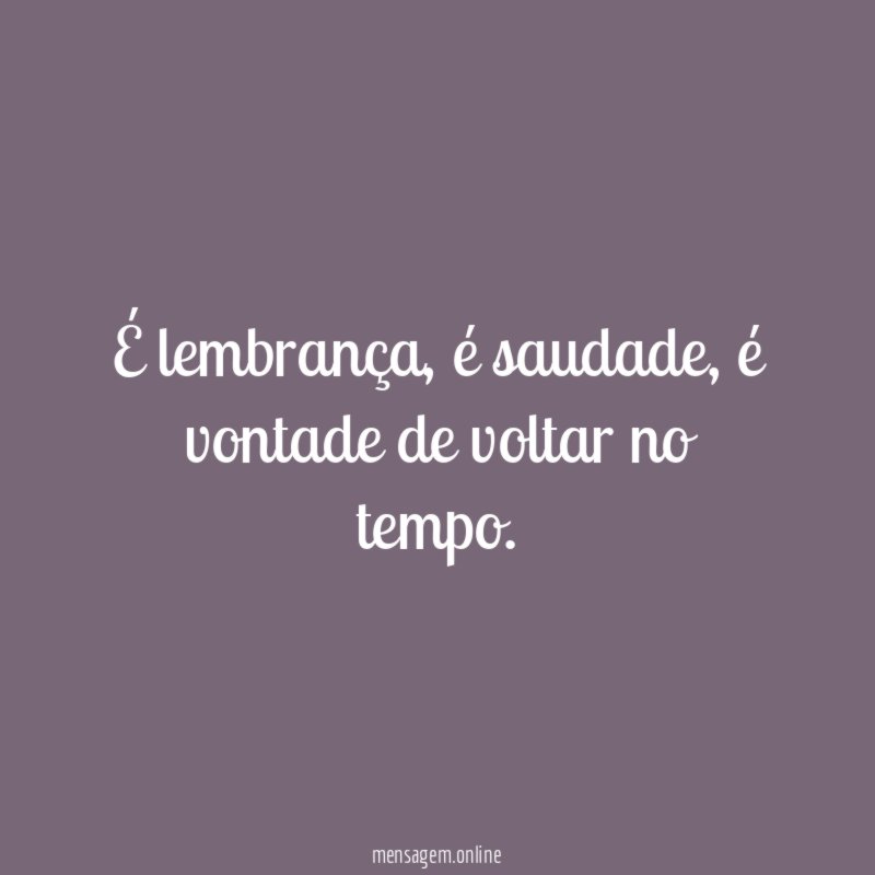É lembrança, é saudade, é vontade de voltar no tempo.