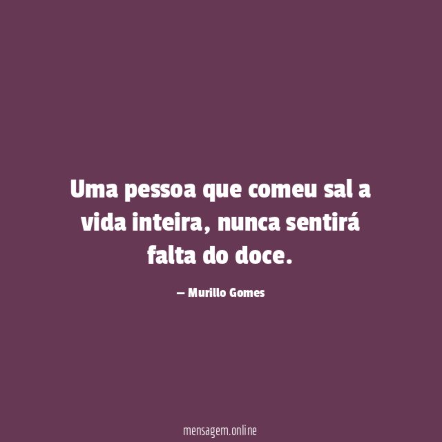 Uma pessoa que comeu sal a vida inteira, nunca sentirá falta do doce.