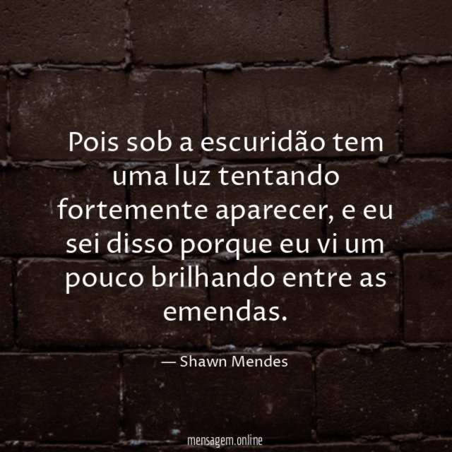 Pois sob a escuridão tem uma luz tentando fortemente aparecer, e eu sei disso porque eu vi um pouco brilhando entre as emendas.
