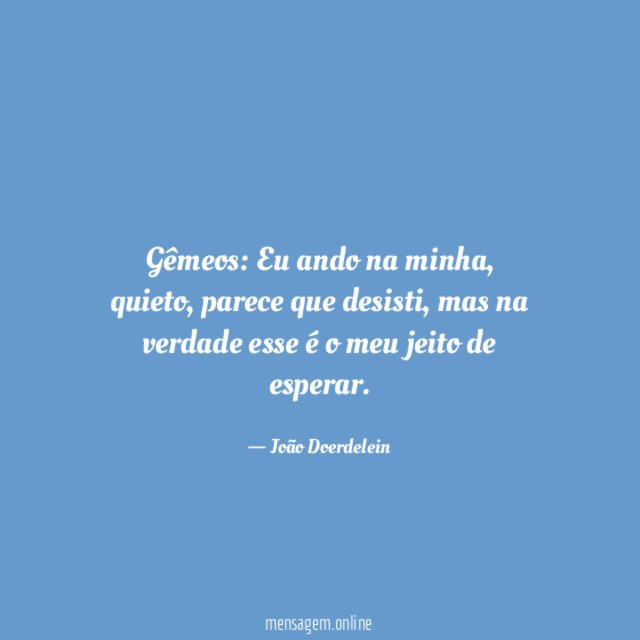 Gêmeos: Eu ando na minha, quieto, parece que desisti, mas na verdade esse é o meu jeito de esperar.