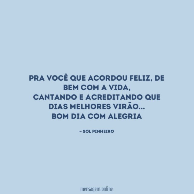 Pra você que acordou feliz, de bem com a vida, cantando e acreditando que dias melhores virão…