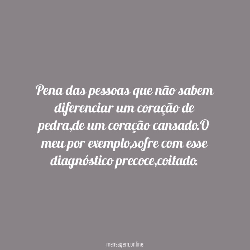Pena das pessoas que não sabem diferenciar um coração de pedra, de um coração cansado.O meu por exemplo, sofre com esse diagnóstico precoce, coitado.