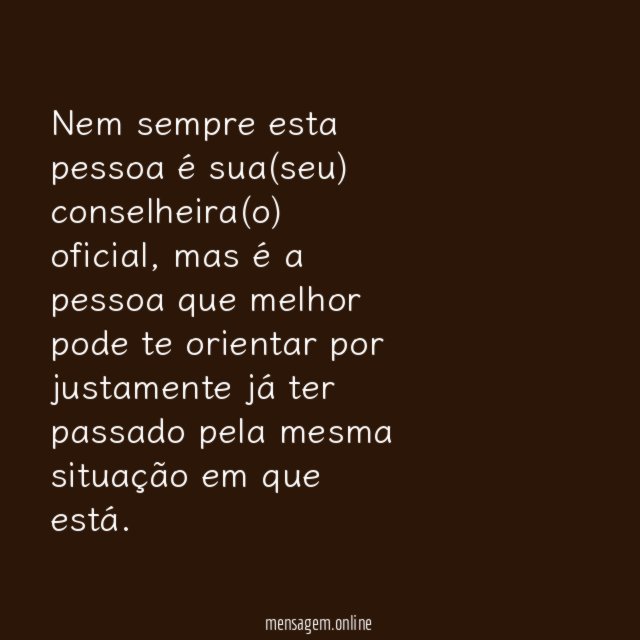 Nem sempre esta pessoa é sua(seu) conselheira(o) oficial, mas é a pessoa que melhor pode te orientar por justamente já ter passado pela mesma situação em que está.