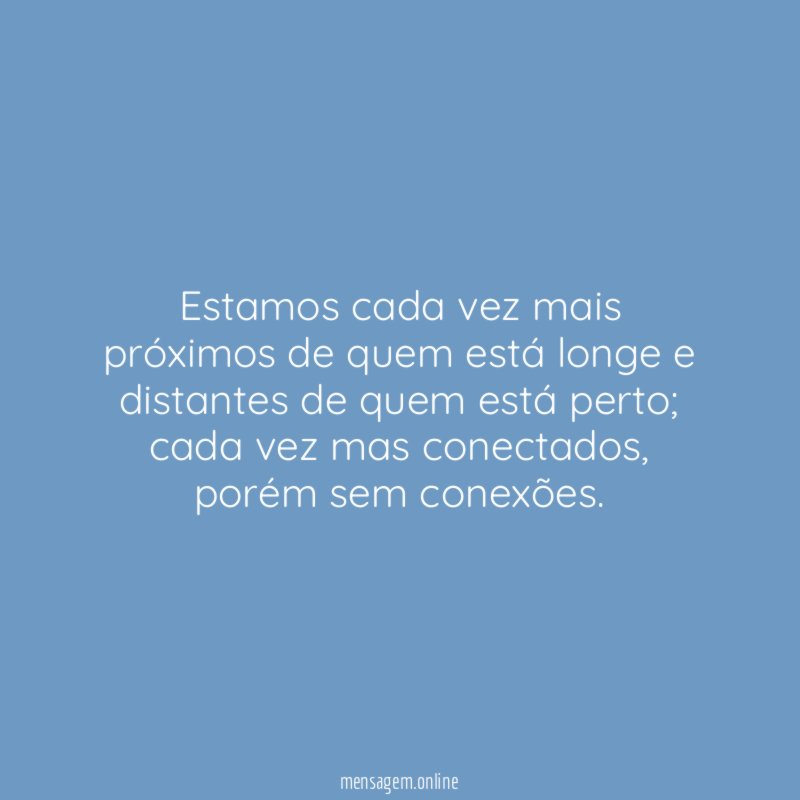 Estamos cada vez mais próximos de quem está longe e distantes de quem está perto; cada vez mas conectados, porém sem conexões.