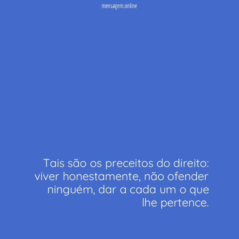 São estes os preceitos do direito: viver honestamente, não ofender os demais e dar a cada um o que lhe pertence.