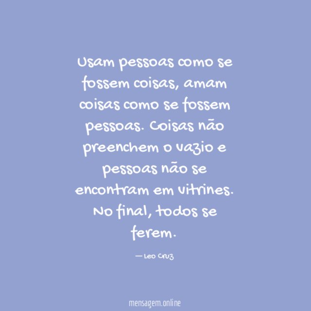As pessoas cada vez mais usam as pessoas e amam as coisas