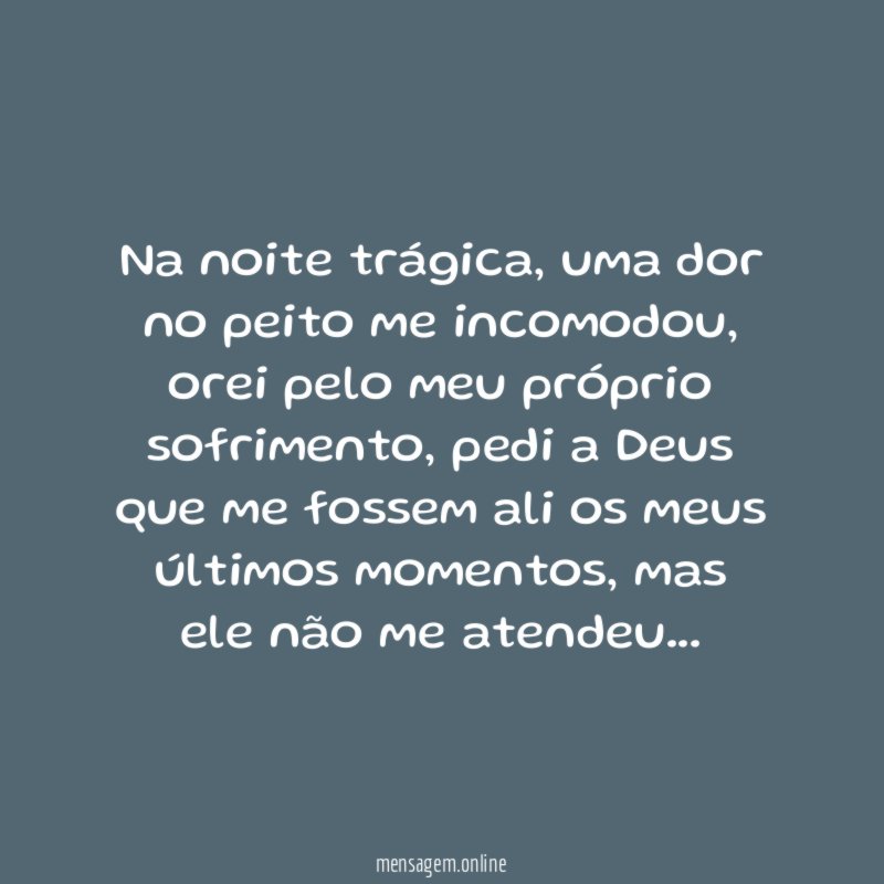 "Na noite trágica, uma dor no peito me incomodou, orei pelo meu próprio sofrimento, pedi a Deus que me fossem ali os meus últimos momentos, mas ele não me atendeu…
