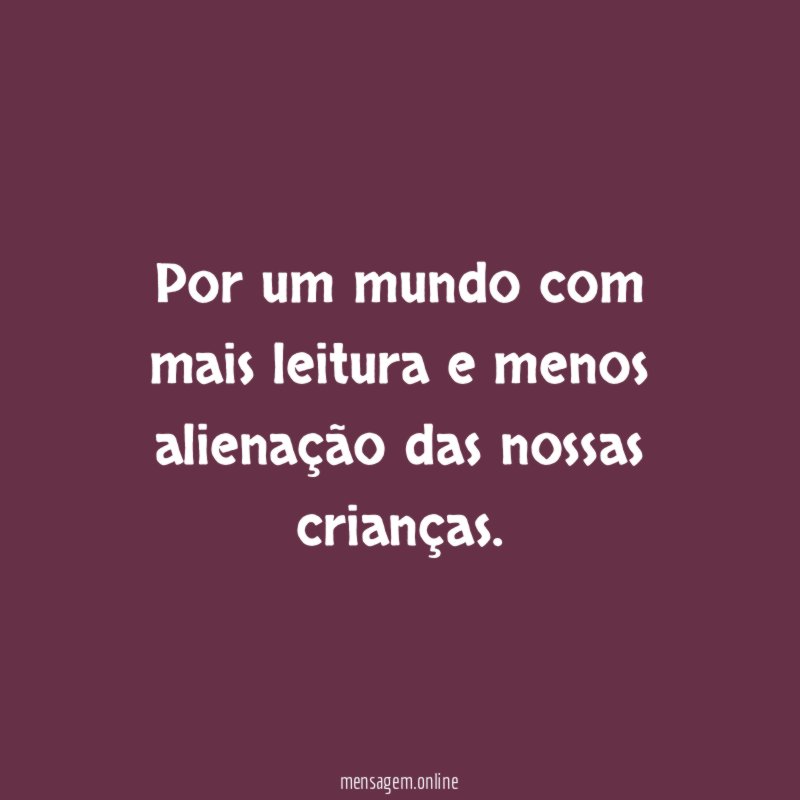Por um mundo com mais leitura e menos alienação das nossas crianças.