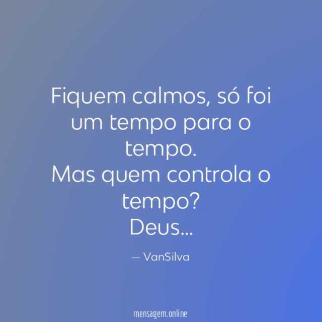 Fiquem calmos, só foi um tempo para o tempo. Mas quem controla o tempo? Deus…