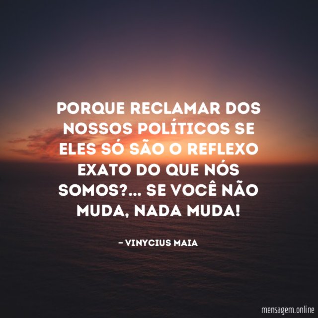 Porque reclamar dos nossos políticos se eles só são o reflexo exato do que nós somos?… Se você não muda, nada muda!