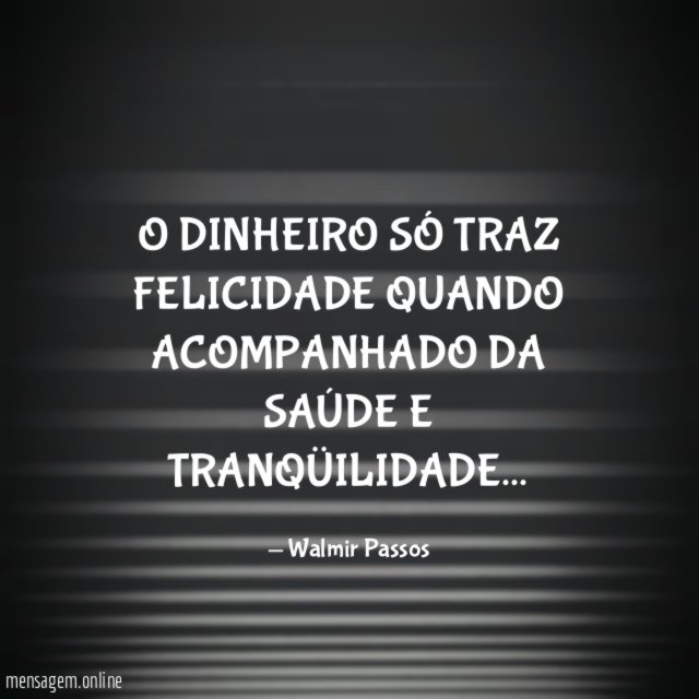 O DINHEIRO SÓ TRAZ FELICIDADE QUANDO ACOMPANHADO DA SAÚDE E TRANQÜILIDADE…