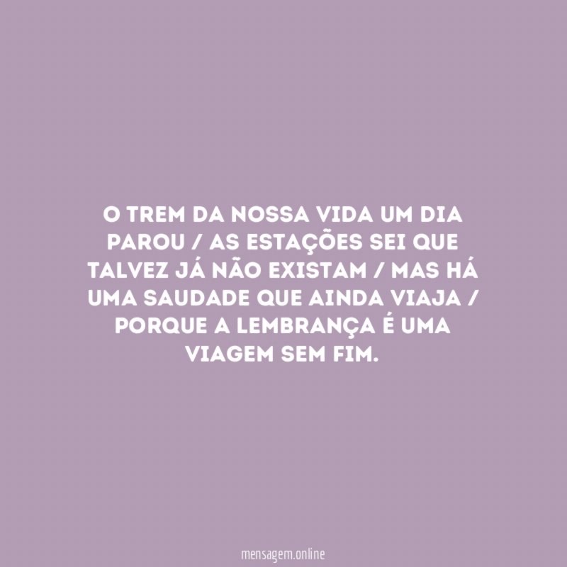 Acho que somos a mecha/ de um lampião sempre aceso/ pássaros que ficaram presos/ num cárcere de reminiscências.