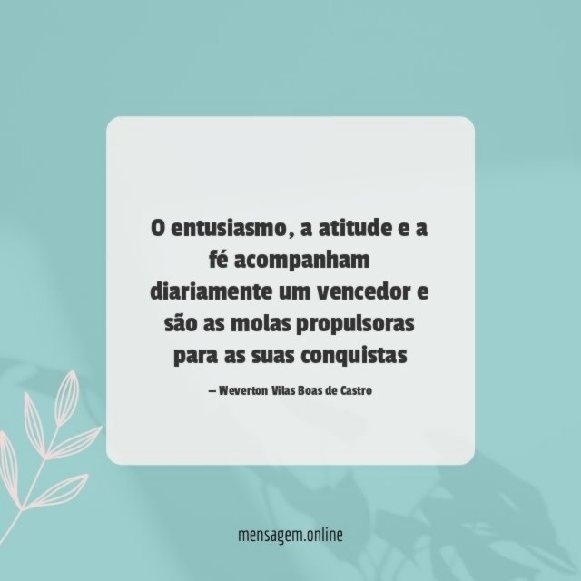 O entusiasmo, a atitude e a fé acompanham diariamente um vencedor e são as molas propulsoras para as suas conquistas