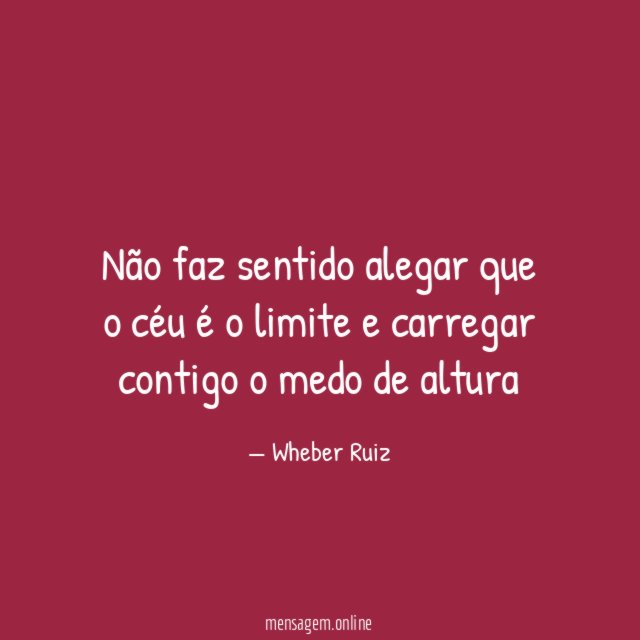 Não faz sentido alegar que o céu é o limite e carregar contigo o medo de altura