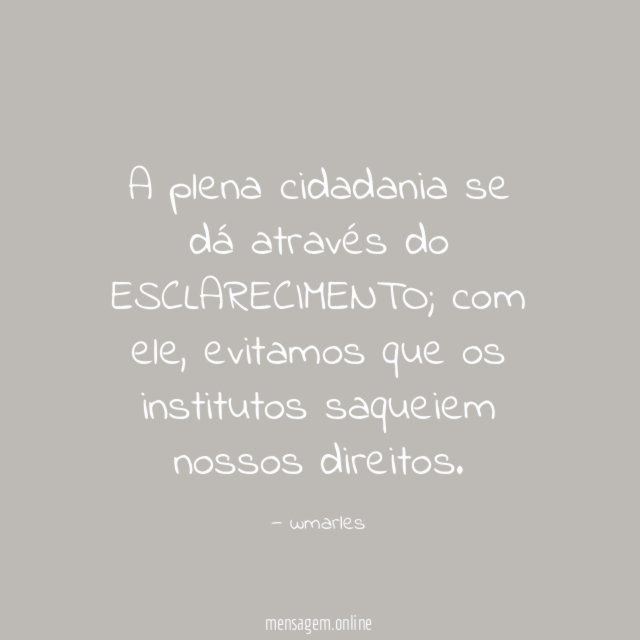 A plena cidadania se dá através do ESCLARECIMENTO; com ele, evitamos que os institutos saqueiem nossos direitos.