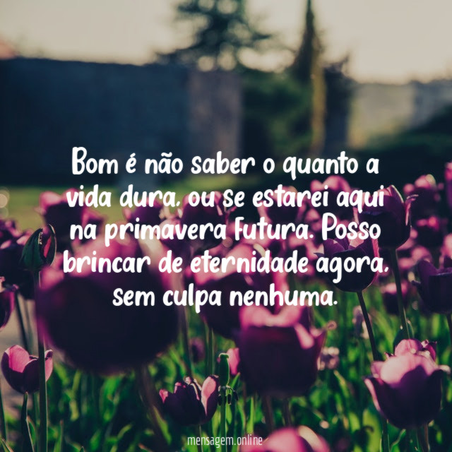 "Bom é não saber o quanto a vida dura, ou se estarei aqui na primavera futura. Posso brincar de eternidade agora, sem culpa nenhuma."